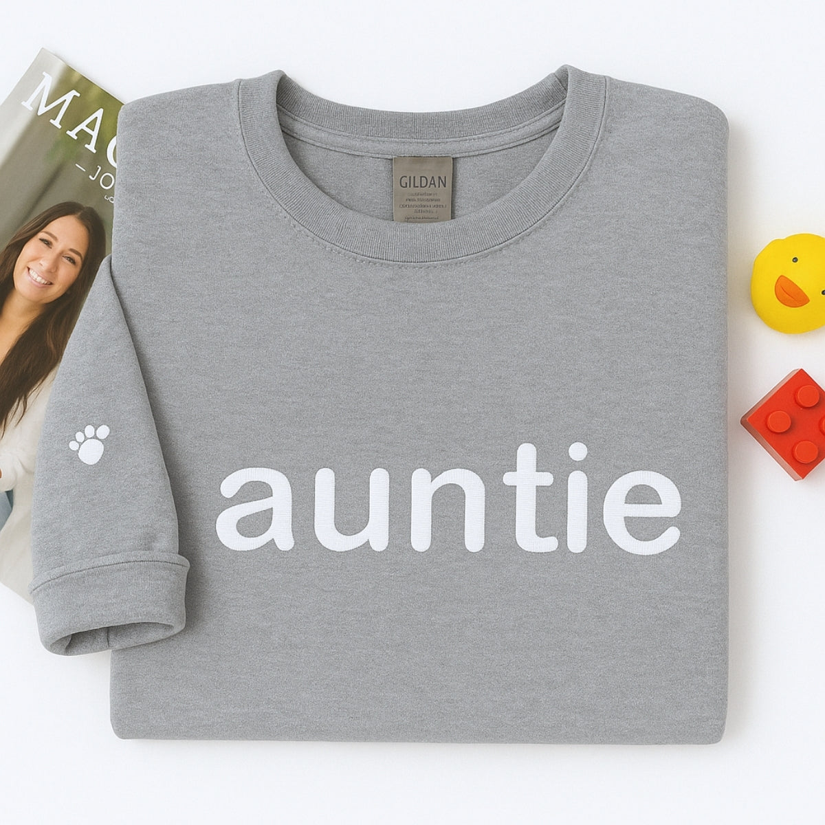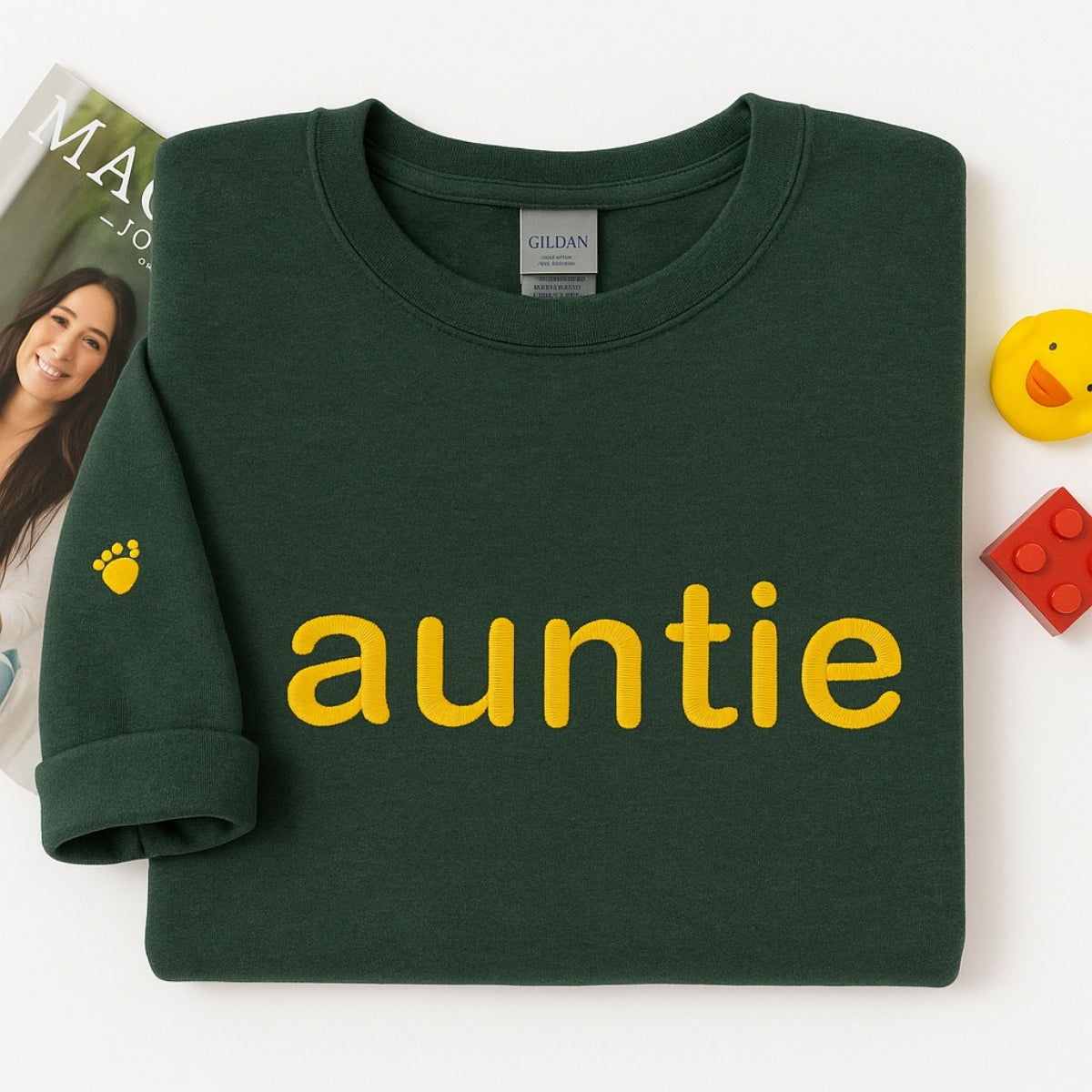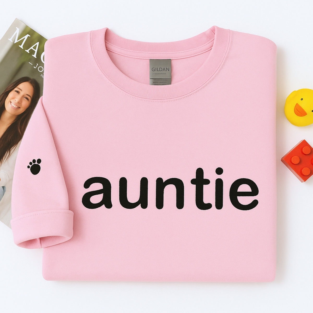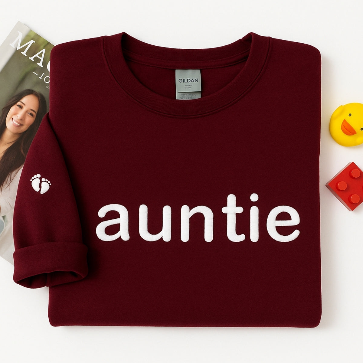 Custom Baby Footprint Aunt Hoodie – Embroidered New Auntie Gift Pullover